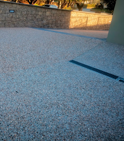 Solução mista com recurso ao nosso molde “Manta” e acabamento em Antracite e pavimento desactivado.